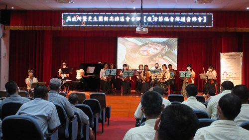 為慶祝復活節、強化收容人戒毒意志,法務部矯正署高雄戒治所於115年4月2日上午9時30分至11時,舉辦「復活節福音佈道音樂會」。活動特別邀請財團法人基督教更生團契高雄區會及路竹基督教會林睦雄牧師帶領「絃之音樂團」共18位志工入所演出,透過管弦樂與美聲合唱的交織,傳遞堅定戒毒決心與復活重生的深刻感動,現場共計84名收容人參與。