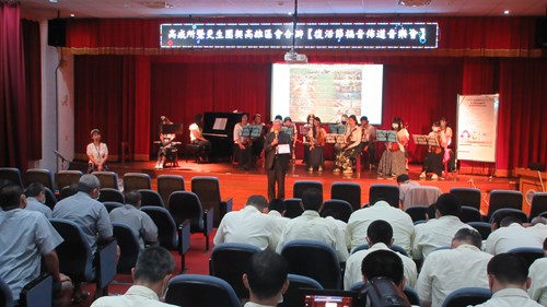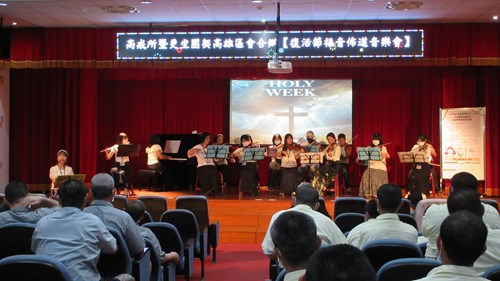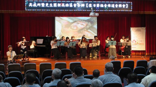 林睦雄牧師首先簡介路竹教會與絃之音樂團,解說復活節典故,林牧師引用耶穌受難時的名言「因為他們所做的,他們不曉得」,透過解析耶穌背負十字架贖罪的歷程,勉勵在場收容人即便身處磨難,只要具備悔改的勇氣與改變的決心,人生隨時都能如同復活節的真諦一般「重新開始」。