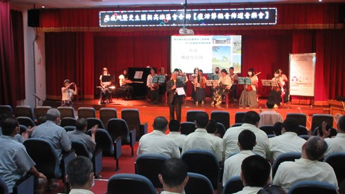 音樂會現場,絃之音樂團展現了精湛的演藝水準,配置大提琴、中提琴、小提琴及鋼琴伴奏,在女中音清澈純淨的領唱下,現場響起經典敬拜詩歌「十架的冠冕」,悠揚的弦樂旋律與莊嚴的合音迴盪在大禮堂,消弭了監所冰冷的氛圍,轉化為追求新生的正向力量。